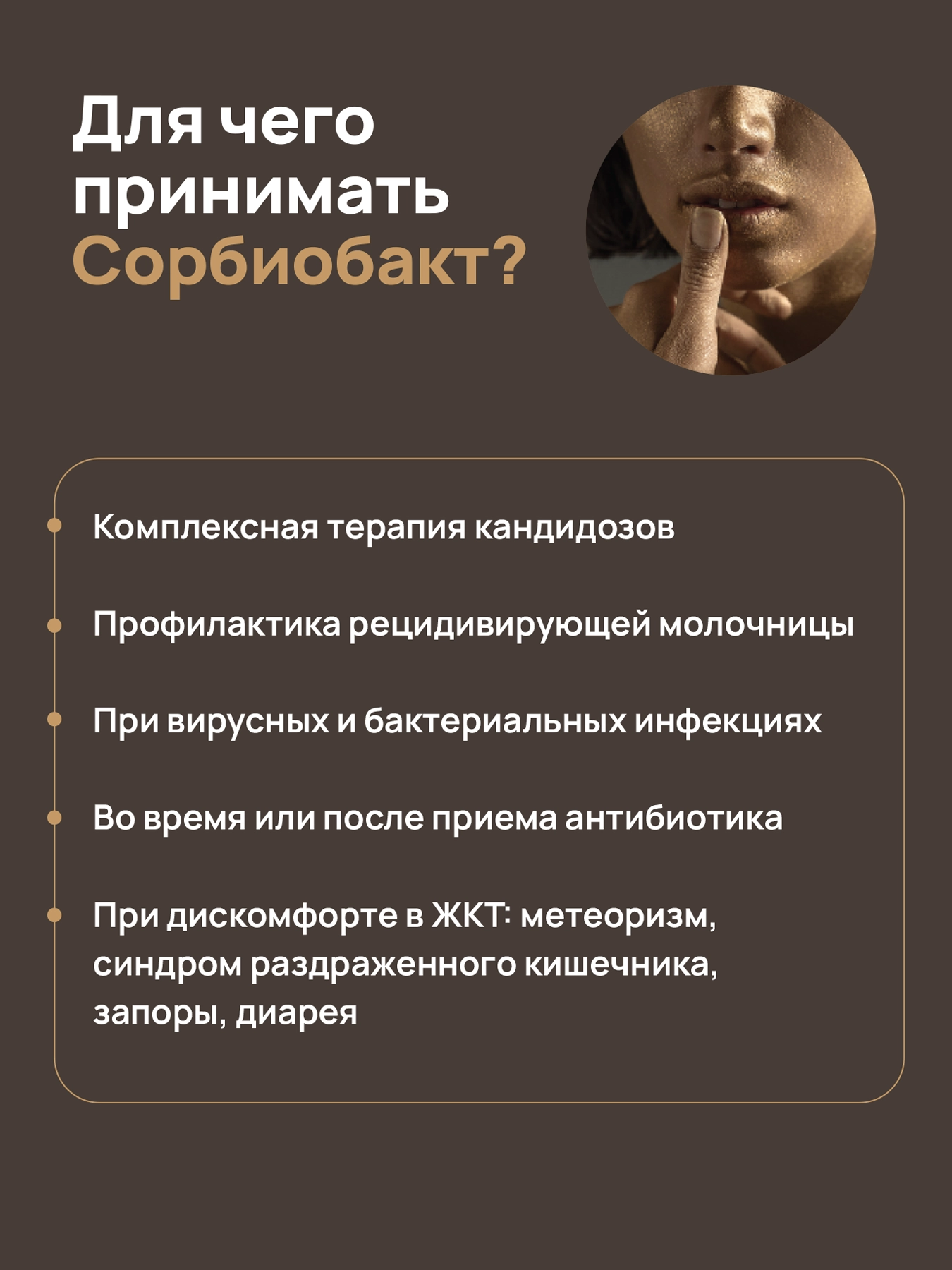Сорбиобакт не содержит живых бактерий — это максимально безопасная формула, подходящая для приёма даже на фоне антибиотиков.