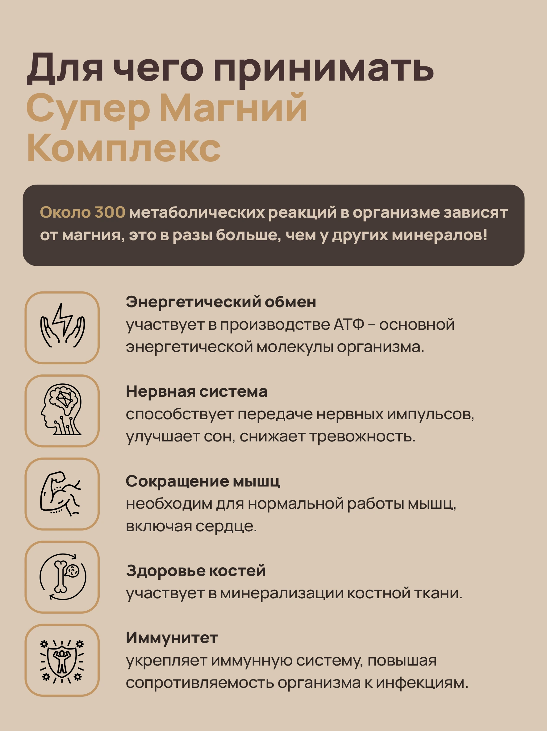 Это ключевой участник более чем 300 биохимических процессов в организме: от работы сердца до сна, от стрессоустойчивости до энергии.