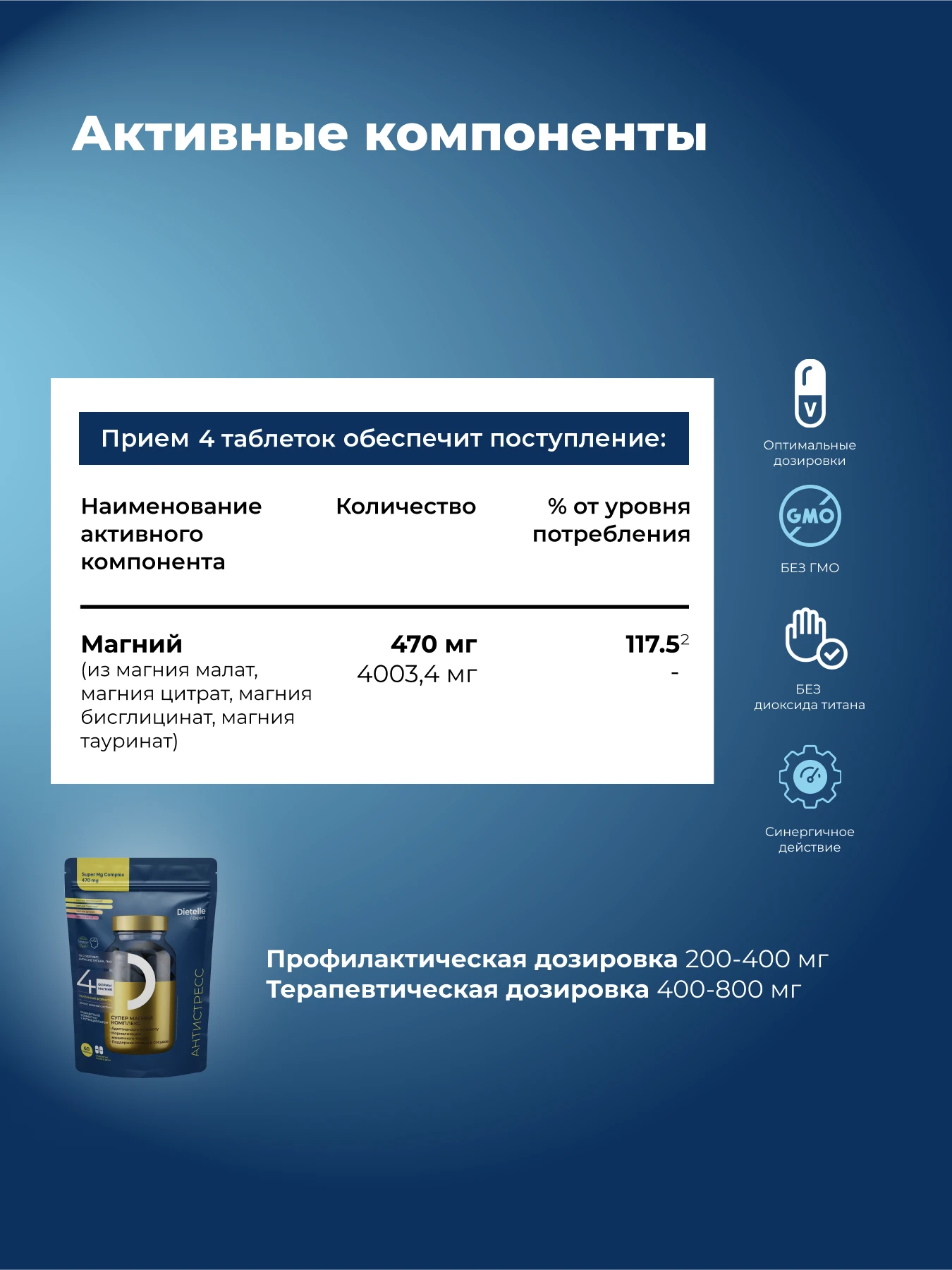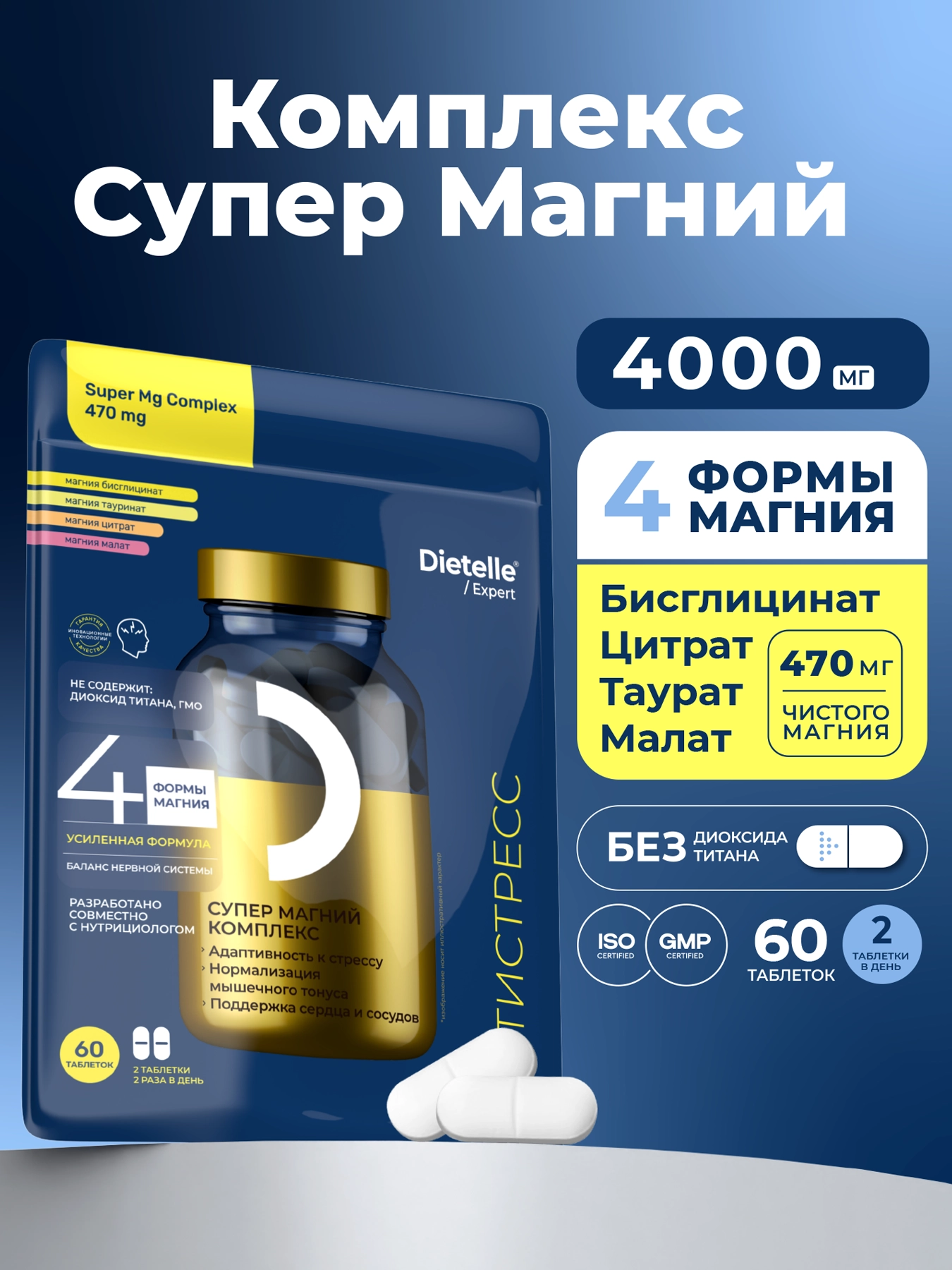 Магний играет ключевую роль в регуляции нервной системы, способствует расслаблению мышц и улучшению сна. Комплекс содержит 4 активных формы магния и высокую суточную дозировку для оптимального усвоения.