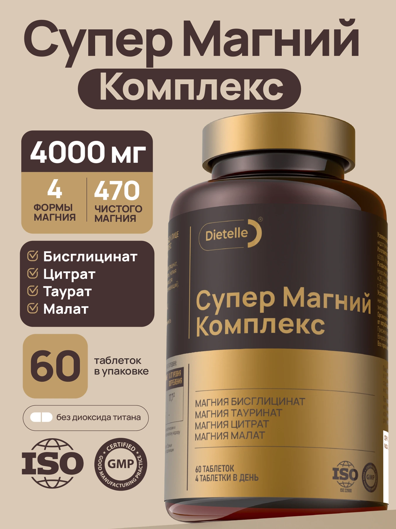 Содержит 4 современные формы магния: малат, цитрат, бисглицинат и таурат. Этот комплекс обеспечивает оптимальное усвоение и максимально широкое действие, поддерживая нормальную работу нервной и сердечно-сосудистой систем, снижая уровень стресса и улучшая качество сна. Магний необходим для более чем 300 биохимических реакций в организме, включая производство энергии и поддержание мышечной функции.