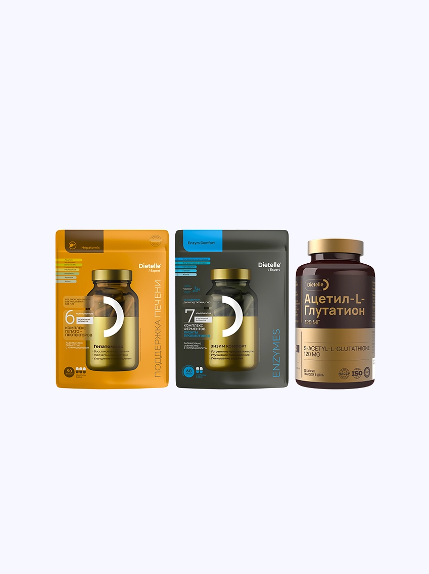 Мощный антиоксидант, защищающий клетки печени от повреждений свободными радикалами. Глутатион участвует в детоксикации организма и способствует восстановлению клеток печени.