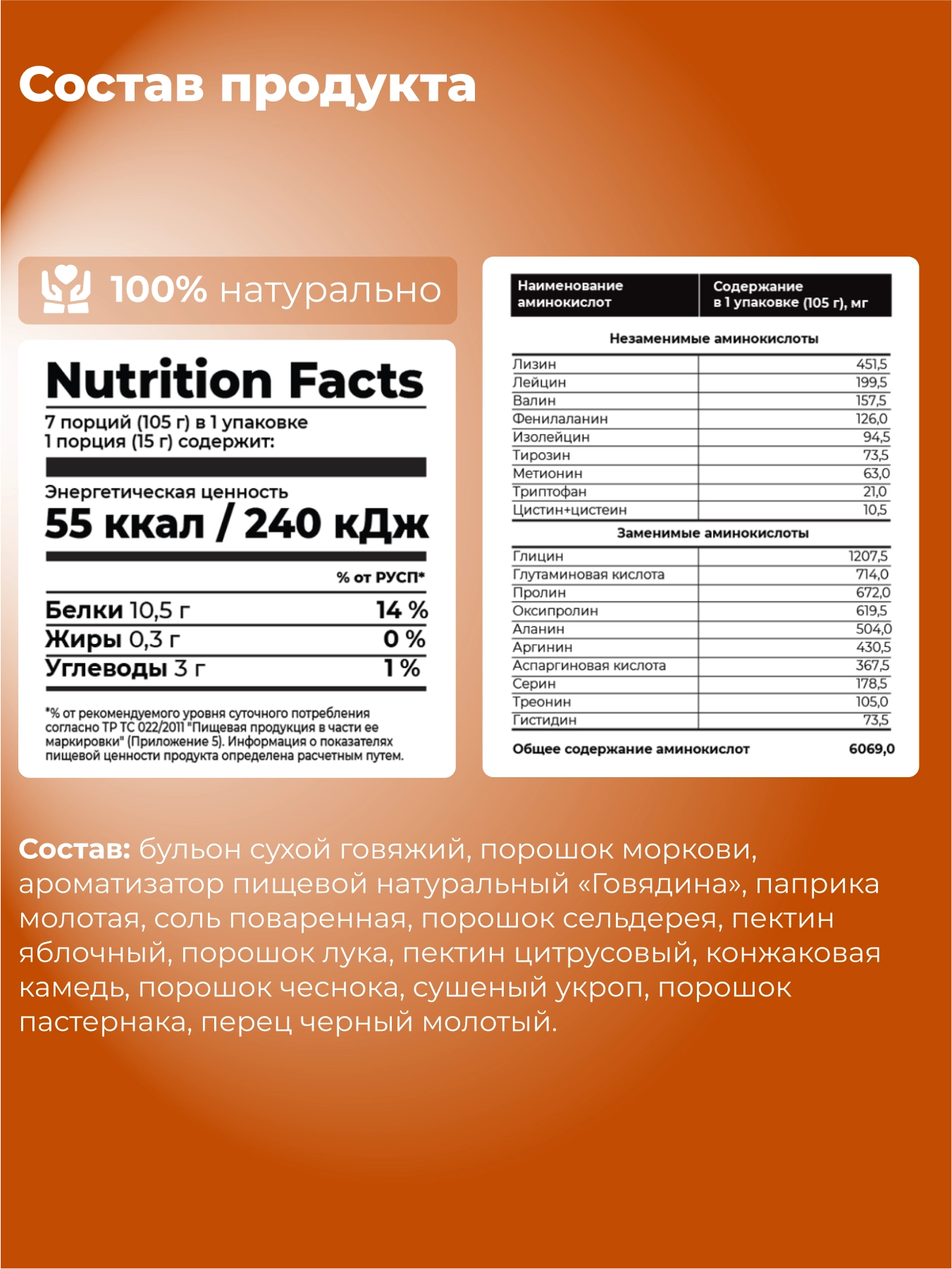 Комплекс способствует повышению уровня серотонина — гормона, ответственного за чувство счастья и улучшение психоэмоционального состояния.