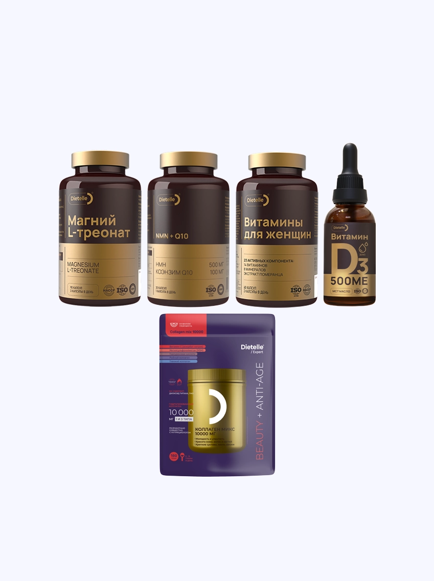 Мощный тандем для борьбы с возрастными изменениями на клеточном уровне. NMN (никотинамидмононуклеотид) — предшественник NAD+, активирует «гены молодости», способствует восстановлению ДНК и повышению энергии. Коэнзим Q10 — мощный антиоксидант, защищающий клетки от повреждений и поддерживающий здоровье сердца. Вместе они замедляют процессы старения, повышают энергетический тонус и поддерживают когнитивные функции.