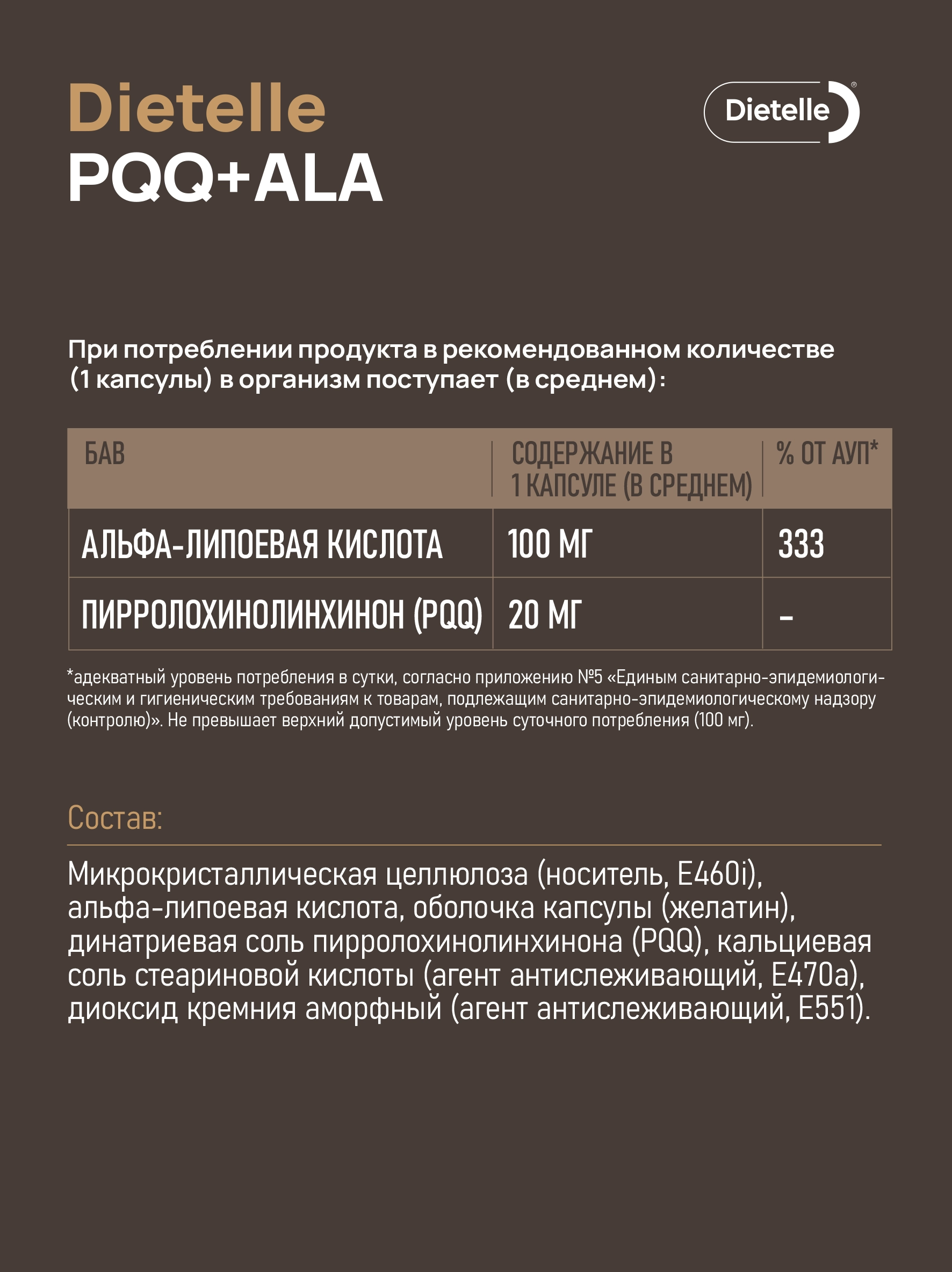 Комбинация пирролохинолинхинона (PQQ) и альфа-липоевой кислоты (ALA) является ключом к клеточной энергии и защите мозга. PQQ активно участвует в росте новых митохондрий (энергетических станций клеток), что повышает энергетический потенциал мозга. Альфа-липоевая кислота – универсальный антиоксидант, который защищает мозговые клетки от повреждений свободными радикалами, поддерживая их здоровье и функциональность.
