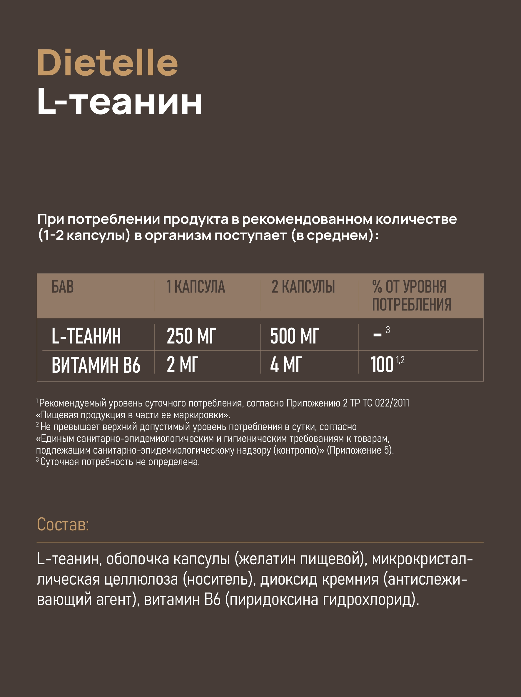 Снижает уровень стресса и тревожности, улучшает память и концентрацию внимания. L-теанин, аминокислота из зеленого чая, синергетически работает с витамином B6, оптимизируя работу нейротрансмиттеров. Теанин способствует выработке альфа-волн в мозге, что создаёт состояние спокойной сосредоточенности.